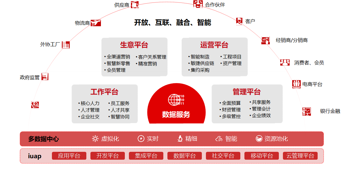 NC Cloud,基于iuap社會(huì)化商業(yè)應(yīng)用基礎(chǔ)平臺(tái),圍繞人、財(cái)、物、客等四大管控對(duì)象,幫助企業(yè)構(gòu)建面向社會(huì)化商業(yè)的工作平臺(tái)、管理平臺(tái)、運(yùn)營(yíng)平臺(tái)與生意平臺(tái),連接全球、全網(wǎng)、全域資源,賦能企業(yè)實(shí)現(xiàn)基于數(shù)據(jù)驅(qū)動(dòng)的業(yè)務(wù)變革與商業(yè)創(chuàng)新。